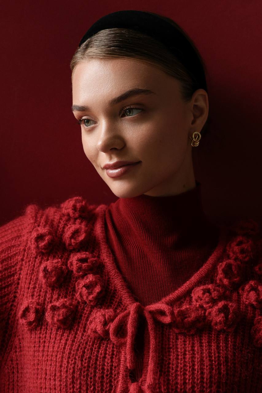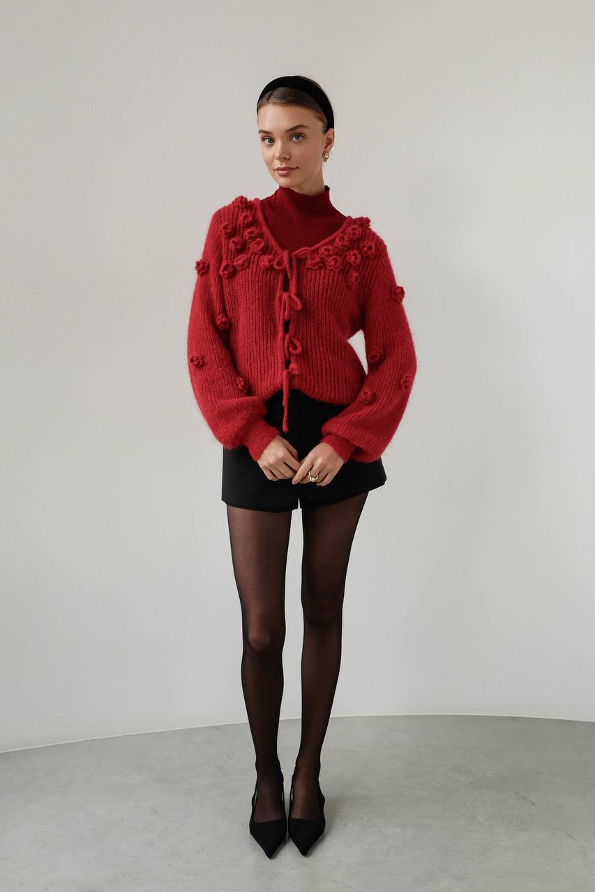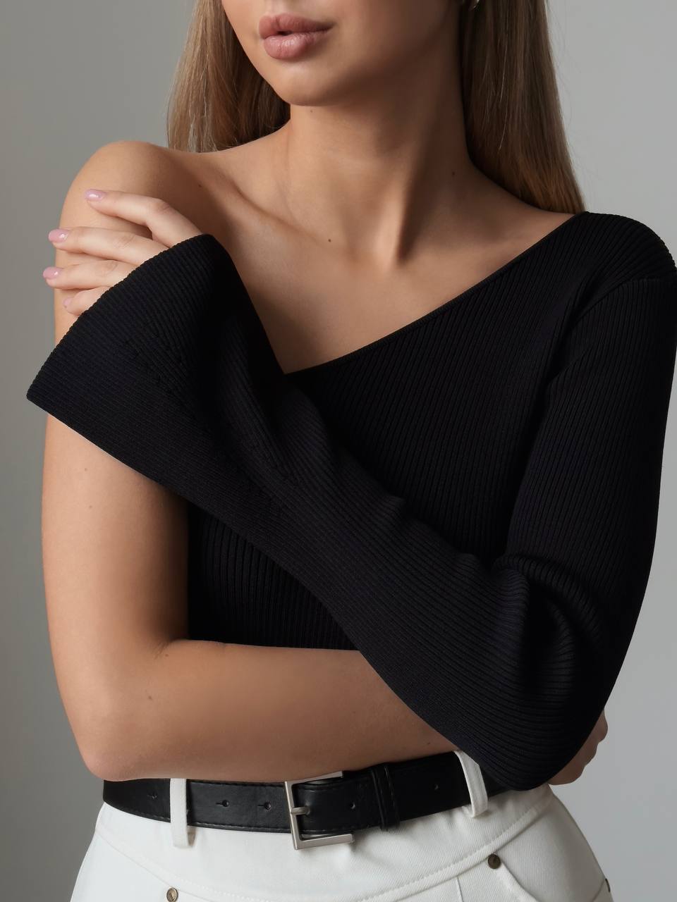 Black Ribbed Knit Midi Dress with Crystal Buttons