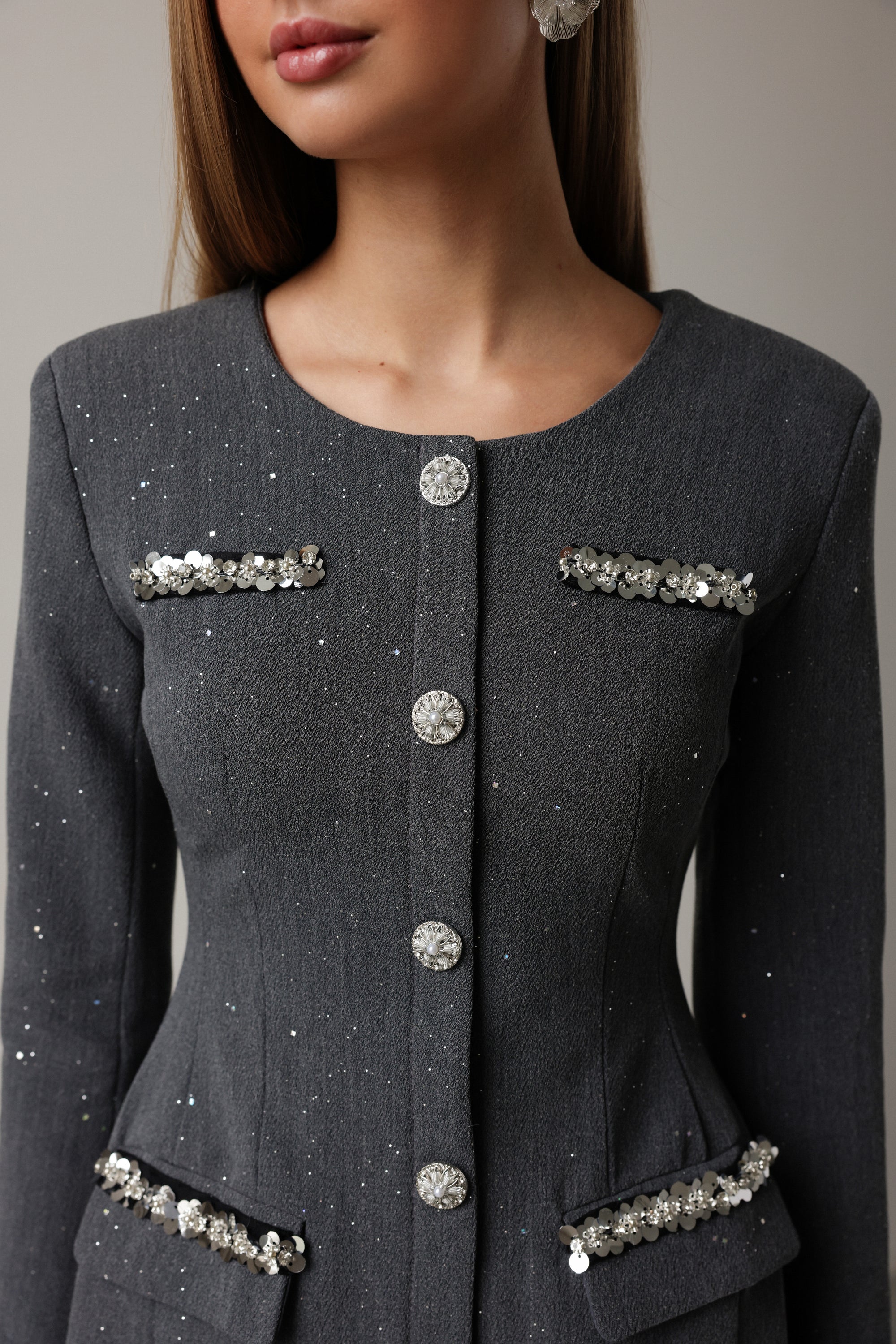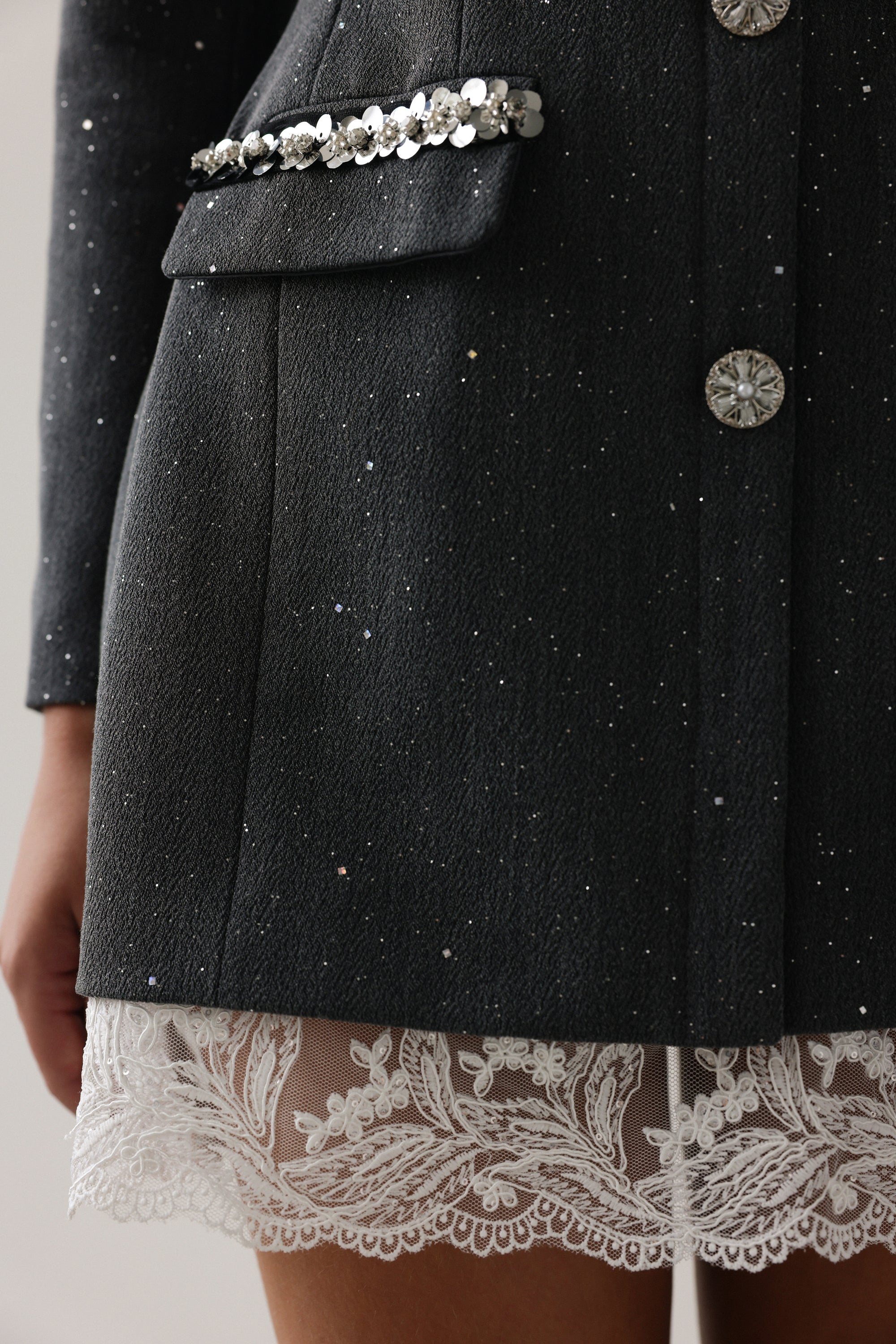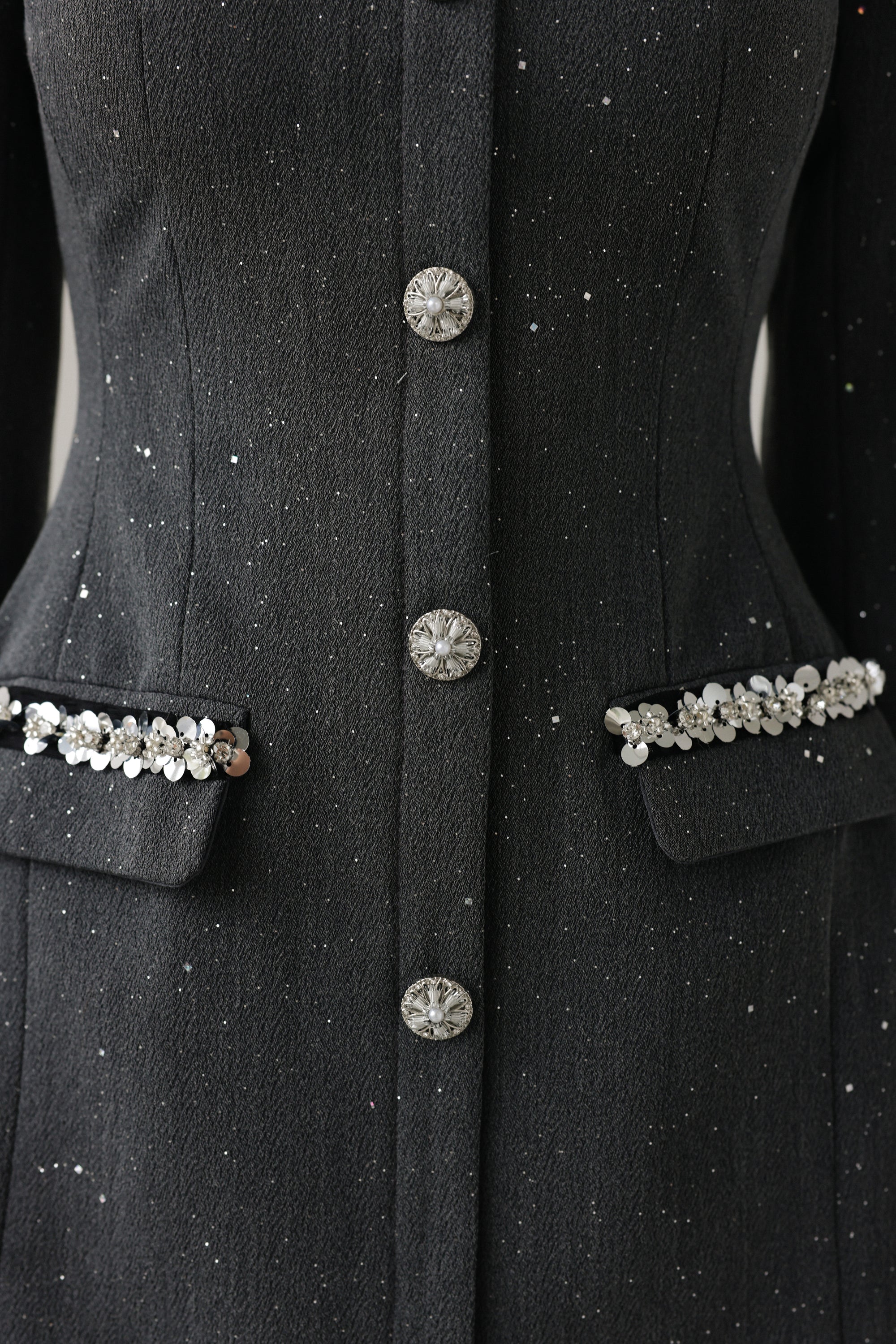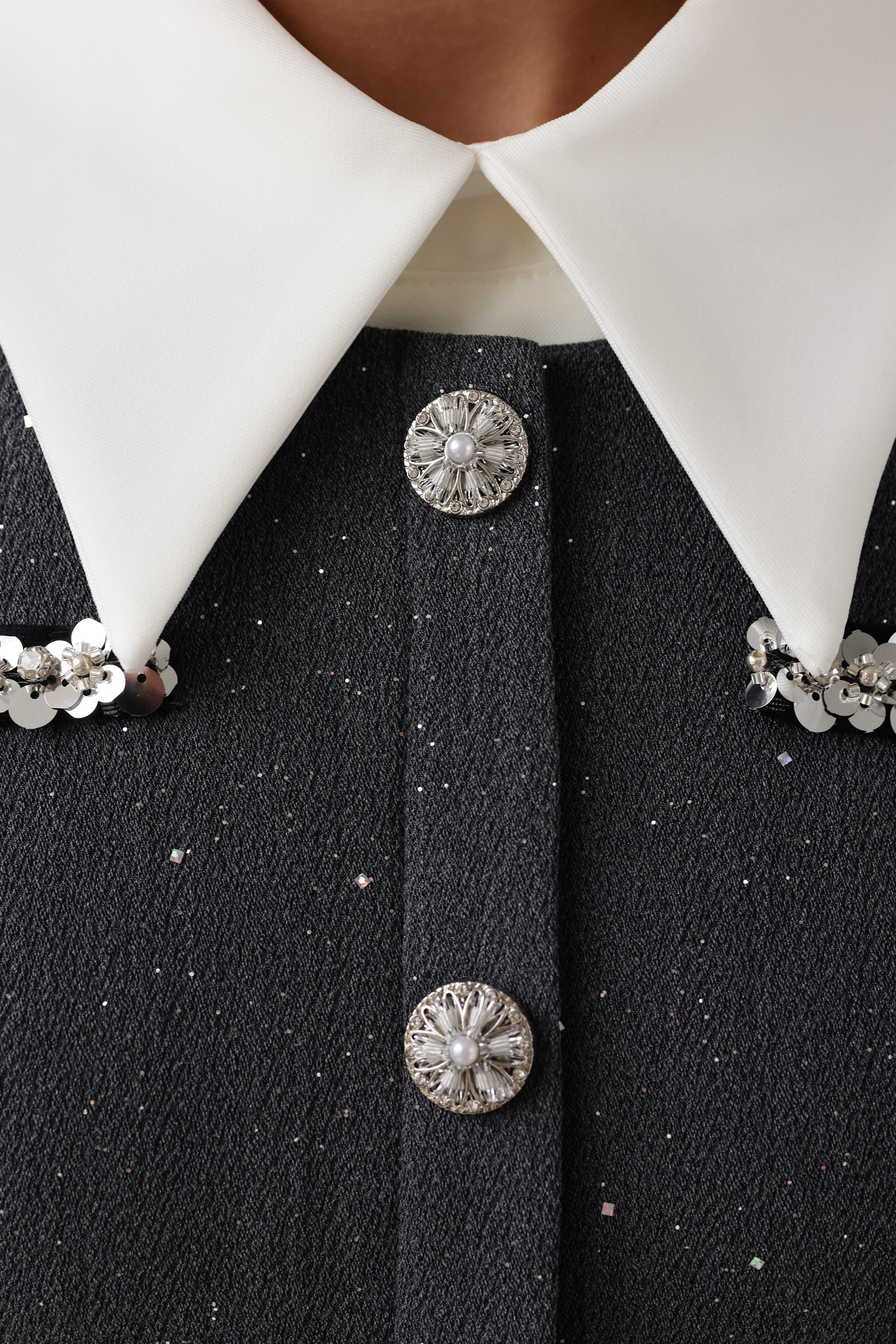 Tweed Button-Down Mini Dress with Ruffle Detail