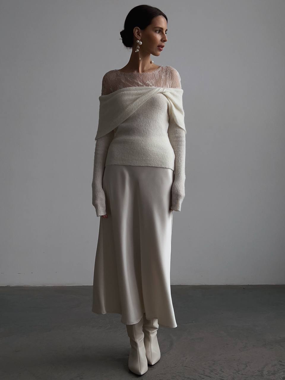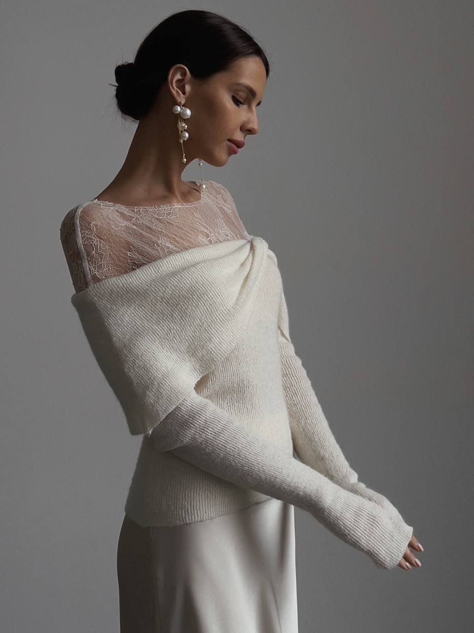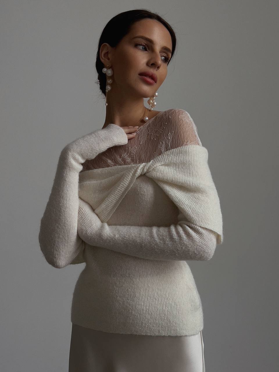 Ivory Draped Lace Top