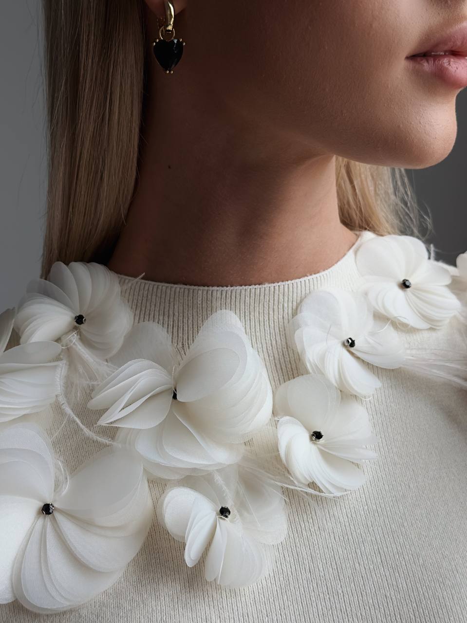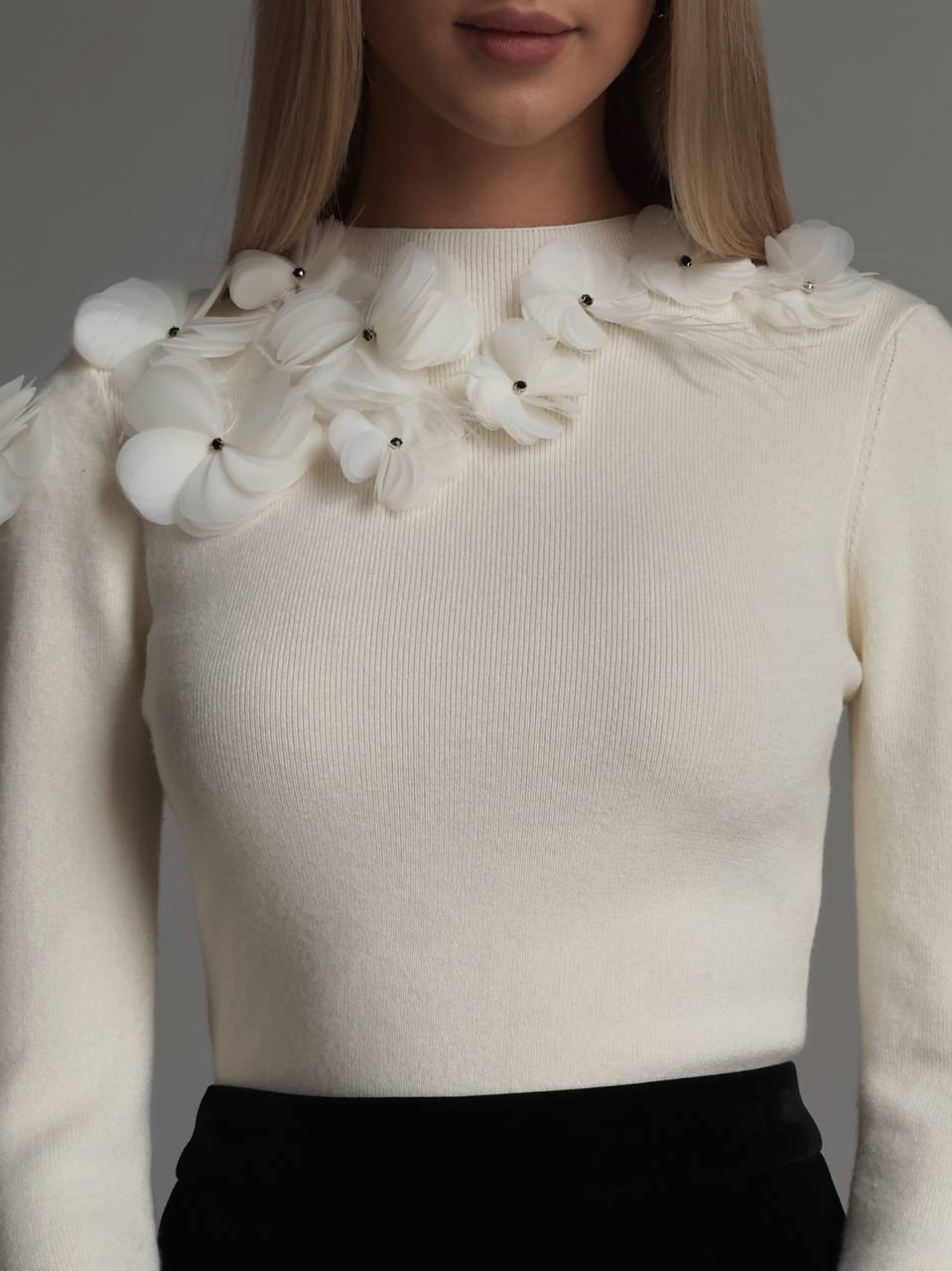 Flower Appliqué Knit Top