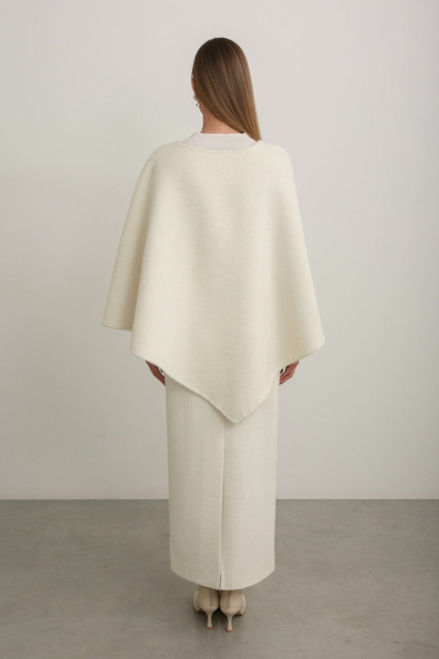 Elegant Ivory Wool Midi Skirt